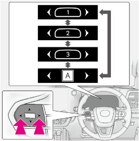 :表示項目の切りかえ・ページ送り走行に関する情報は次のディスプレイに表示されます。