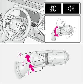 雨や霧などで視界が悪いときに後続車に自分の車の存在を知らせるために使用します。視界が悪いとき以外に使用すると後続車の迷惑になる場合があります。必要なとき以外は使用しないでください。