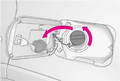すぐに開けると、気温が高いときなどに、給油口から燃料が噴き出るおそれがあります。