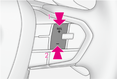 2. 希望の車速(約30km/h以上)までアクセルペダル操作で加速/減速し、走行支援スイッチを押して速度を設定する