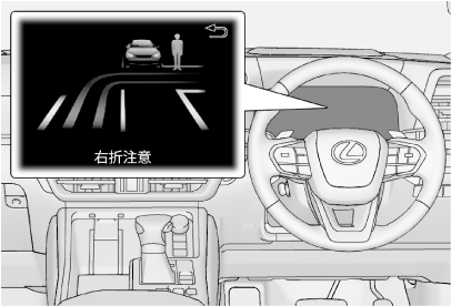 受信した情報は、状況に応じて通知・案内や注意喚起としてマルチインフォメーションディスプレイなどに表示され、運転者に注意を促すことにより安全運転を支援します。