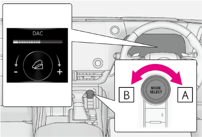 希望の速度(約4 ~ 30km/h)に設定するには、MODE SELECTスイッチをまわします。
