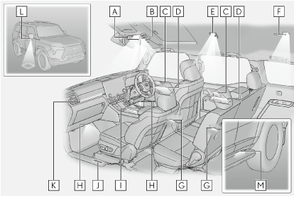 - フロントインテリアランプ/フロントパーソナルランプ(→インテリアランプを操作するには, パーソナルランプを操作するには)