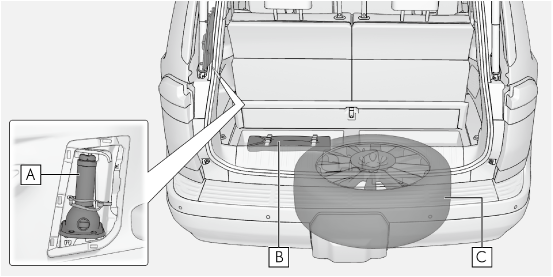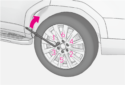 パンクしたタイヤを、備え付けのスペアタイヤと交換してください。