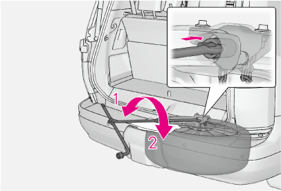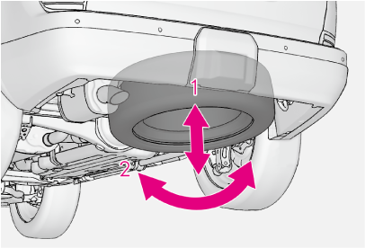 スペアタイヤは完全に地面に降ろしてから取り出す