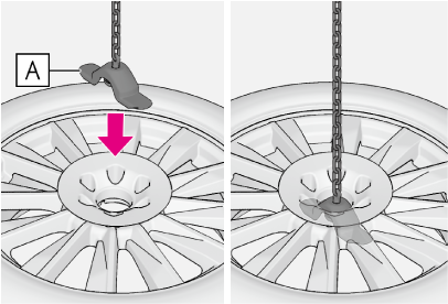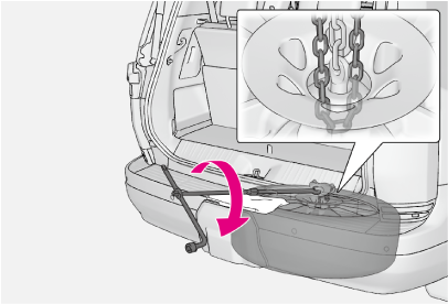 タイヤを格納したあとは、確実に固定されていることを確認してください。固定されていないとタイヤががたつき、走行中にはずれるおそれがあります。