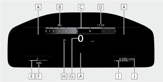 シフトポジションや走行モード、設定などに応じて、メーターの表示や一部の計器類の配置が切りかわります。(→ドライブモードセレクトスイッチ, ユーザーカスタマイズ機能一覧)