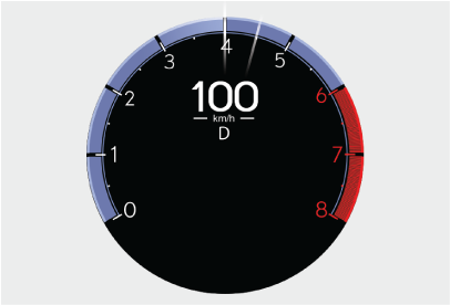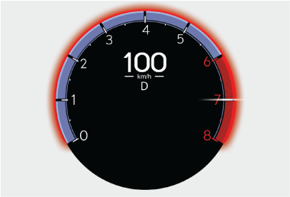 タコメーターが表示されているときは、タコメーターの表示がレッドゾーン(エンジンの許容回転数をこえている範囲)に入らないようにしてください。