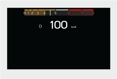 設定したエンジン回転数に到達したときは橙色、レッドゾーンに到達したときは赤色で表示されます。