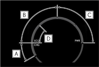 - ハイブリッドエコエリアガソリンエンジンの動力を使用しない状況を多く含む状態を示します。
