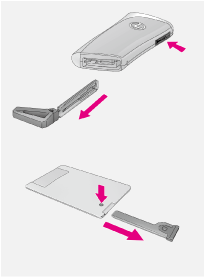 メカニカルキーが取り出しにくいときは、ボールペンの先などで解除ボタンを押してください。引き出しにくいときは、コインなどで引っかけてください。