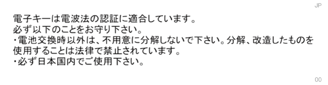 電子キーは電波法の認証に適合しています。必ず以下のことをお守りください。