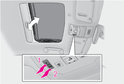ムーンルーフを閉めるとき、またはチルトダウンするときに、ムーンルーフが異物の挟み込みを感知すると、作動が停止し少し開きます。