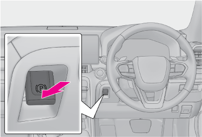 アクセルペダルを踏んでもパーキングブレーキが解除しない場合は、手動で解除してください。