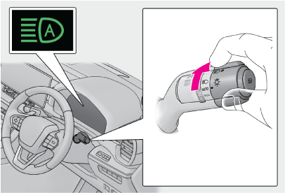 - オートマチックハイビームスイッチを押す