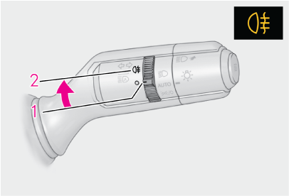 必要なときのみ使用してください。視界が悪いとき以外に使用すると後続車の迷惑になる場合があります。