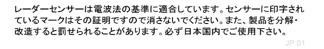 お守りいただかないと、レーダーが正常に作動せず、思わぬ事故につながり、重大な傷害におよぶか、最悪の場合死亡につながるおそれがあります。