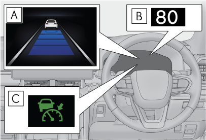 本機能によって、車間制御モードの速度や車間距離設定が変更されることはありません。