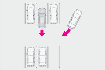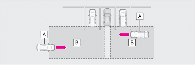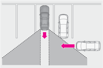 • 自車の隣の駐車スペースで後退する車両