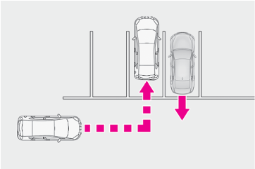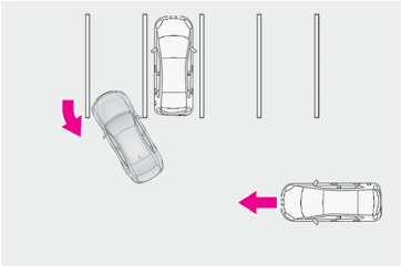 • 斜めの駐車場から出庫するとき