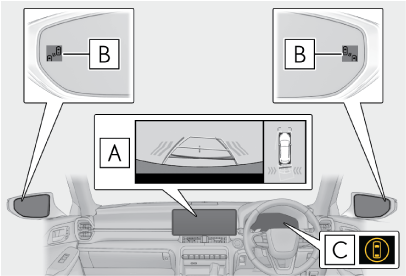 自車の右後方または左後方から接近している車両を検知したときは、両側のドアミラーインジケーター(→表示灯一覧)が点滅し、ブザーが鳴ります。