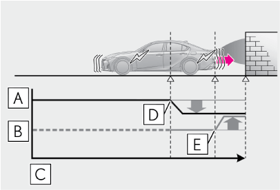 PKSB(パーキングサポートブレーキ)は、完全に車両を停止させるシステムではありません。また、車両を停止させることができたとしても、ブレーキ制御は約2秒で解除されるため、すぐにブレーキペダルを踏んでください。
