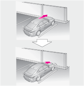 パーキングサポートブレーキ(前後方静止物)の検知範囲は、クリアランスソナーの検知範囲(→距離表示の見方)とは異なります。そのため、クリアランスソナーが静止物との接近をお知らせしても、パーキングサポートブレーキ(前後方静止物)は作動を開始していない場合があります。