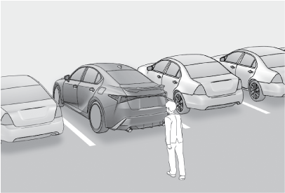 パーキングサポートブレーキ(後方歩行者)の検知範囲は、RCDの検知範囲(→歩行者を検知した場合)とは異なります。そのため、RCDが後方歩行者との接近をお知らせしても、パーキングサポートブレーキ(後方歩行者)は作動を開始していない場合があります。