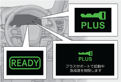 3. “プラスサポートで起動中 急加速を制限します”というメッセージが表示され、プラスサポート表示灯が点灯したことを確認する