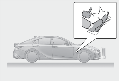 急アクセル時加速抑制が作動すると、ハイブリッドシステムの出力を抑制します。すみやかにアクセルペダルから足を離して、ブレーキペダルを踏んでください。アクセルペダルを踏み込んだままでいると、しばらくしたあとに車両が加速し、思わぬ事故につながるおそれがあり危険です。