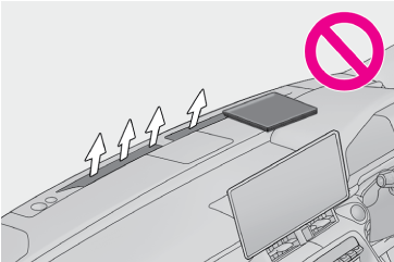フロントウインドウガラスの曇り取りをさまたげないために、吹き出し口をさえぎるようなものを置かないでください。送風がさえぎられ、曇りが取れにくくなることがあります。