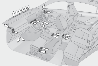 室温や外気温などの条件により、室内の快適性を保つため、リヤ席に送風されることがあります。