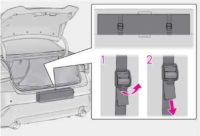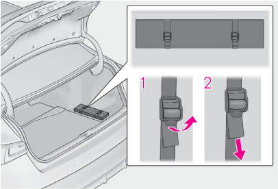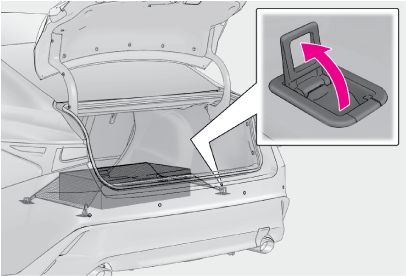 トランクを閉めるときは、ラゲージマットのレバーをトランクの端にかけたままにしないでください。ラゲージマットが破損するおそれがあります。