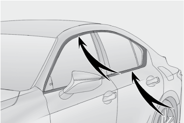 フロントウインドウガラス下部へ連続して水をあてないでください。エアコンの空気取り入れ口があり、エアコンが正常に作動しなくなるおそれがあります。