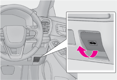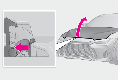 - レバーを左方向に押して、ボンネットを開ける