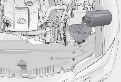 ハイブリッドシステムが熱いときやハイブリッドシステム作動中は、ウォッシャー液を補充しないでください。