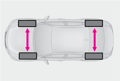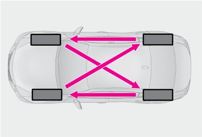 タイヤの摩耗を均等にし寿命をのばすために、タイヤローテーション(タイヤ位置交換)を10,000kmごとに行ってください。