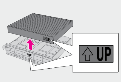 UP”マークの矢印が上を向くように取り付けます。