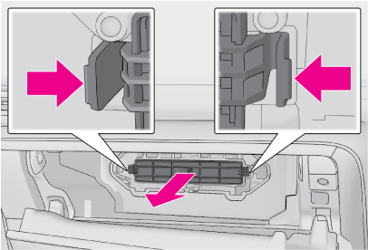 - ツメ(2ヶ所)を押してロックをはずし、フィルターカバーを取りはずす