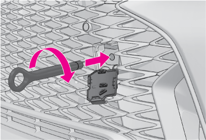 他車にけん引してもらうときは、けん引フックを取り付ける必要があります。手順に従って取り付けてください。
