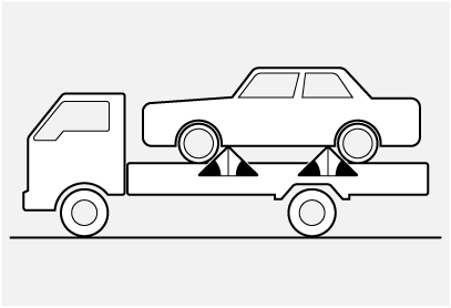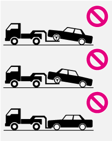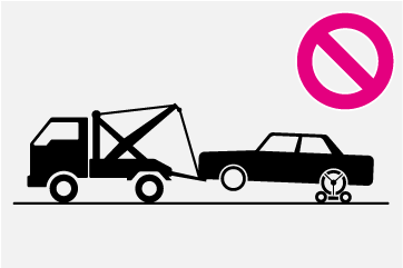 車両の損傷を防ぐために図のようなレッカー車ではけん引しないでください。