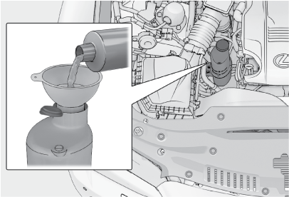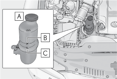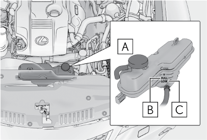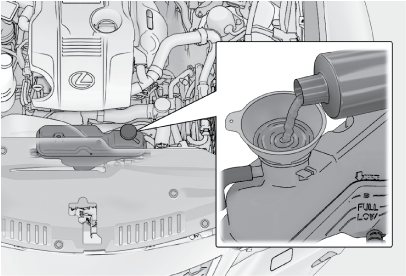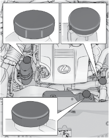 ハイブリッドシステムおよびラジエーターが熱い場合は、冷却水リザーバータンクのキャップや注水キャップを開けないでください。