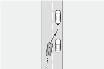 車線変更に相当するハンドル操作を検知した場合、システムは車線逸脱とは判断せず、警報も作動しません。