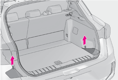 留めひもがはずれた状態でバックドアの開閉をしないでください。トノカバーが破損するおそれがあります。