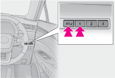 運転席ドアを開けて180秒以内、または運転席ドアを閉めて60秒以内に呼び出したいポジションのボタンを押すと、シートの位置が調整されます。