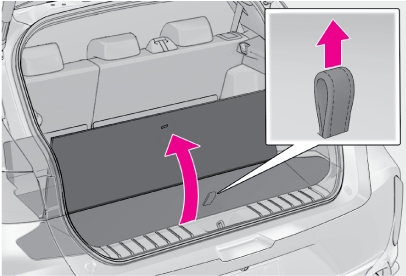 留めひもがはずれた状態でバックドアの開閉をしないでください。トノカバーが破損するおそれがあります。
