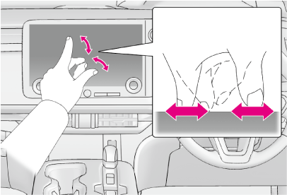 画面にふれた2本の指を広げたり近づけたりします。地図の拡大や縮小を行うことができます。