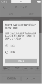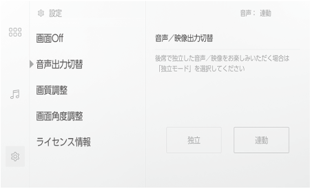 各オーディオ操作画面上部の[連動] / [ 独立] を選択しても、音声出力モードを切りかえる画面を表示できます。
