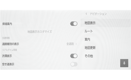 現況情報を利用した、すいている道路の表示のON/OFF設定をします。