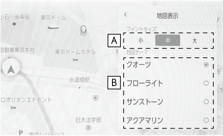 現況情報を利用した渋滞・混雑している道路の表示のON/OFF設定をします。